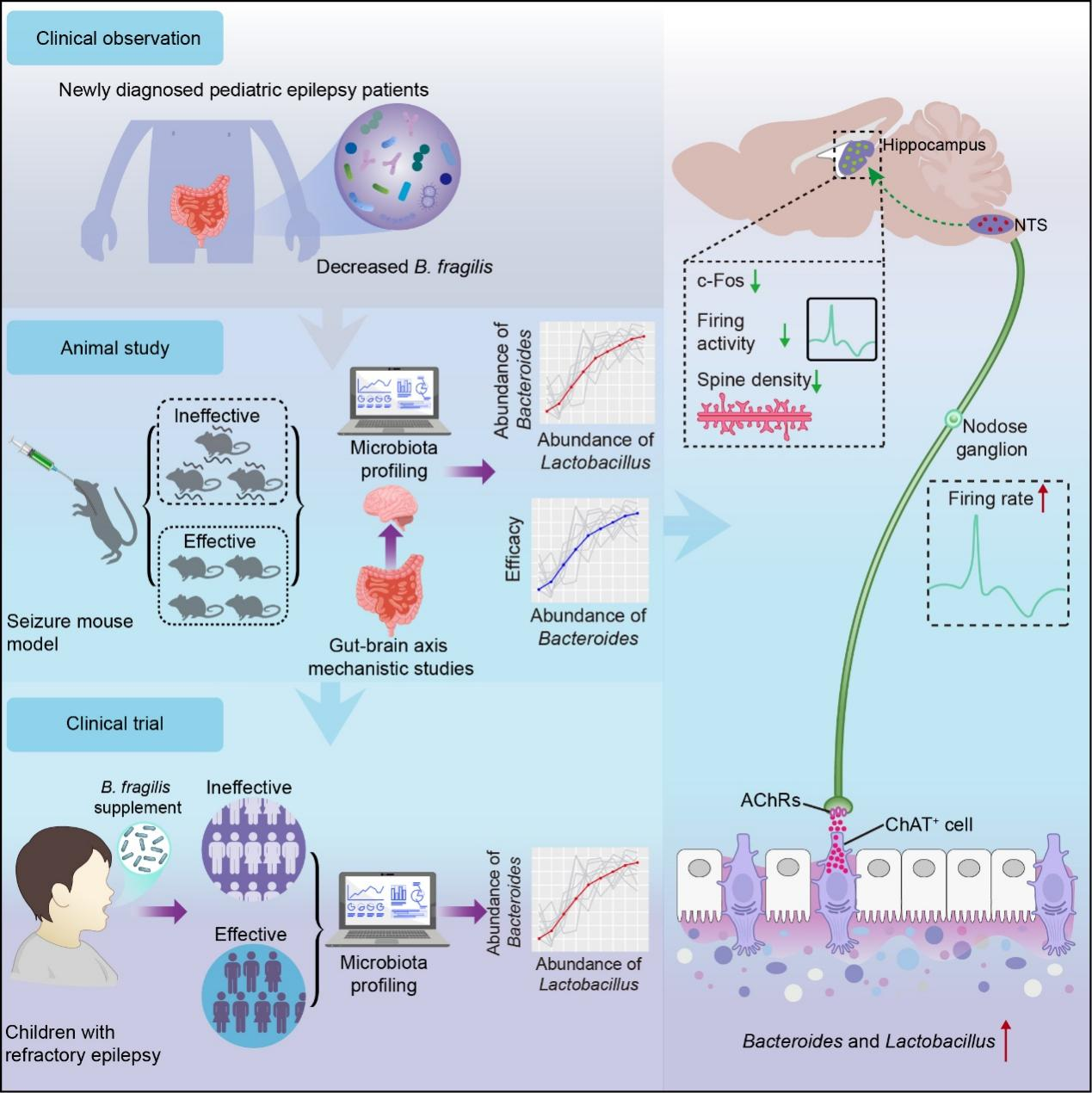 In this study, researchers observed that the children with epilepsy exhibited a marked reduction in B. fragilis, and they confirmed this finding by analyzing microbiome profiles from children with refractory epilepsy. In mouse models of pentylenetetrazole- and kainic acid-induced seizures, researchers found that oral administration of B. fragilis substantially reduced both seizure frequency and severity, establishing that the supplement of B. fragilis can reshape brain excitability.